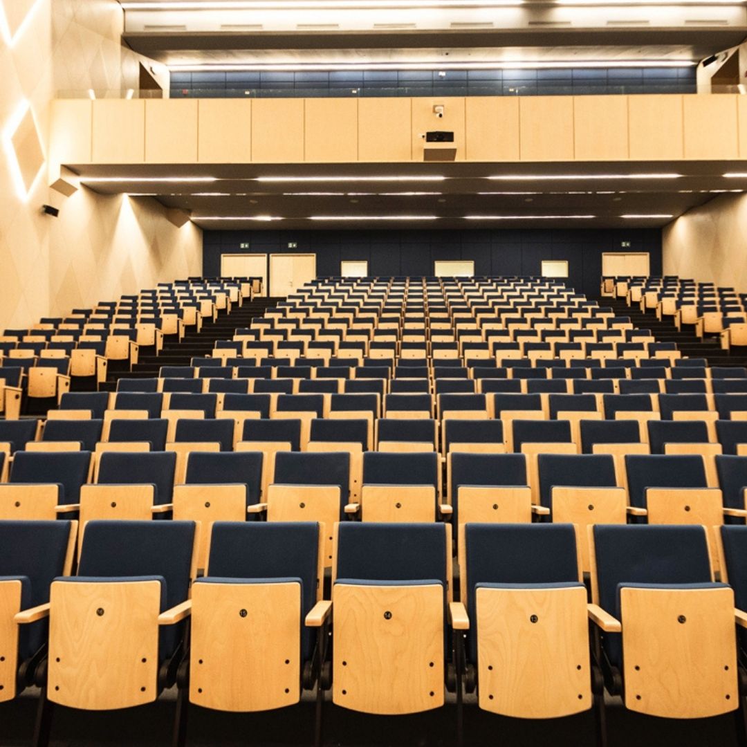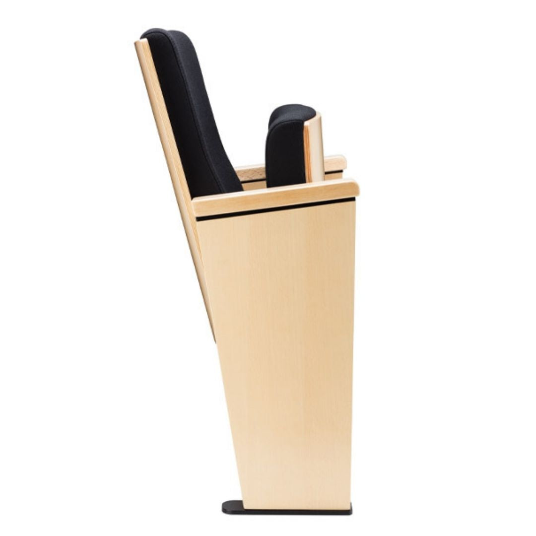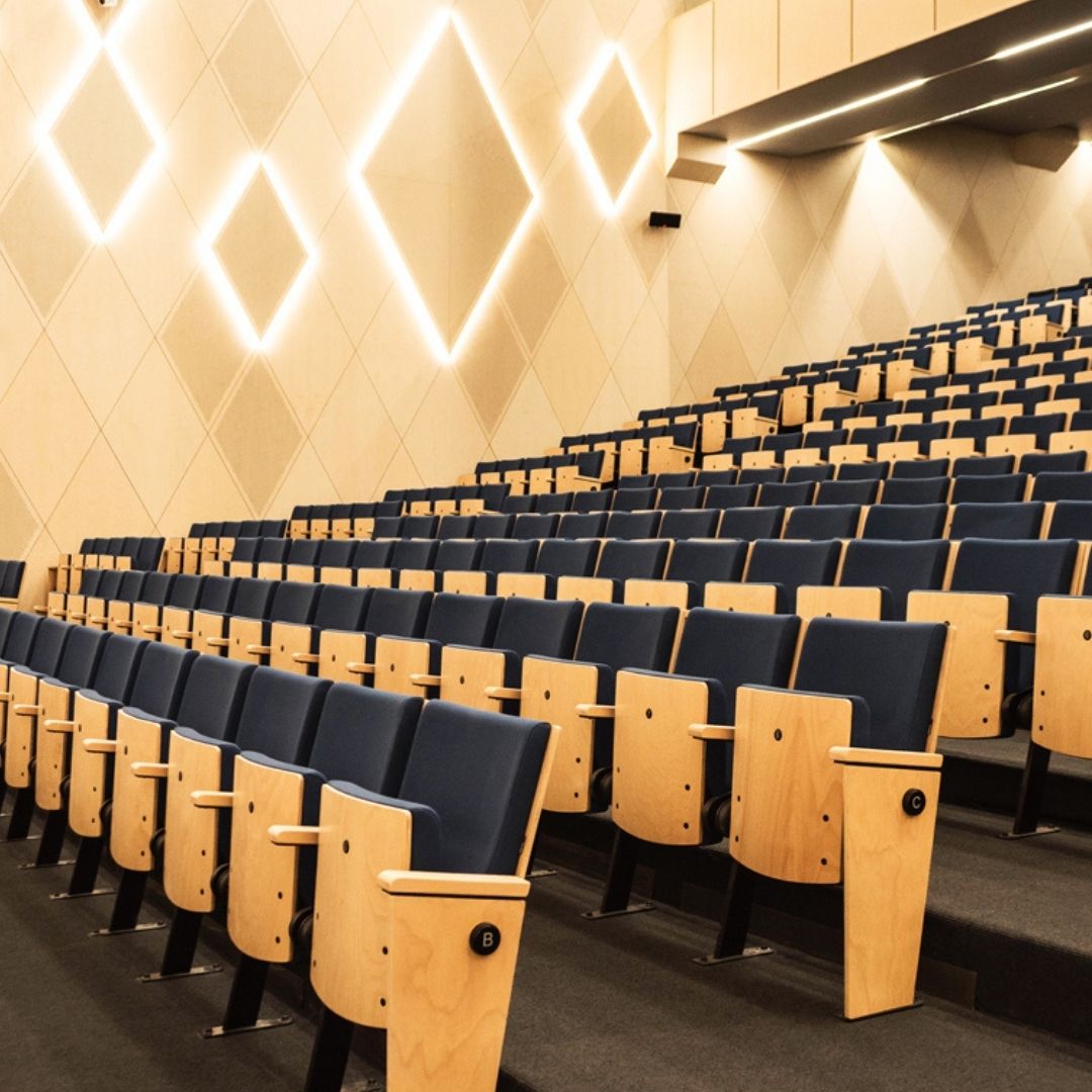 The seat and backrest are made of molded plywood and a cushion made of upholstered open-cell polyurethane foam. The backrest cushion, combined with other materials, allows us to obtain acoustic absorption coefficients that are easily adaptable to the requirements of each project.